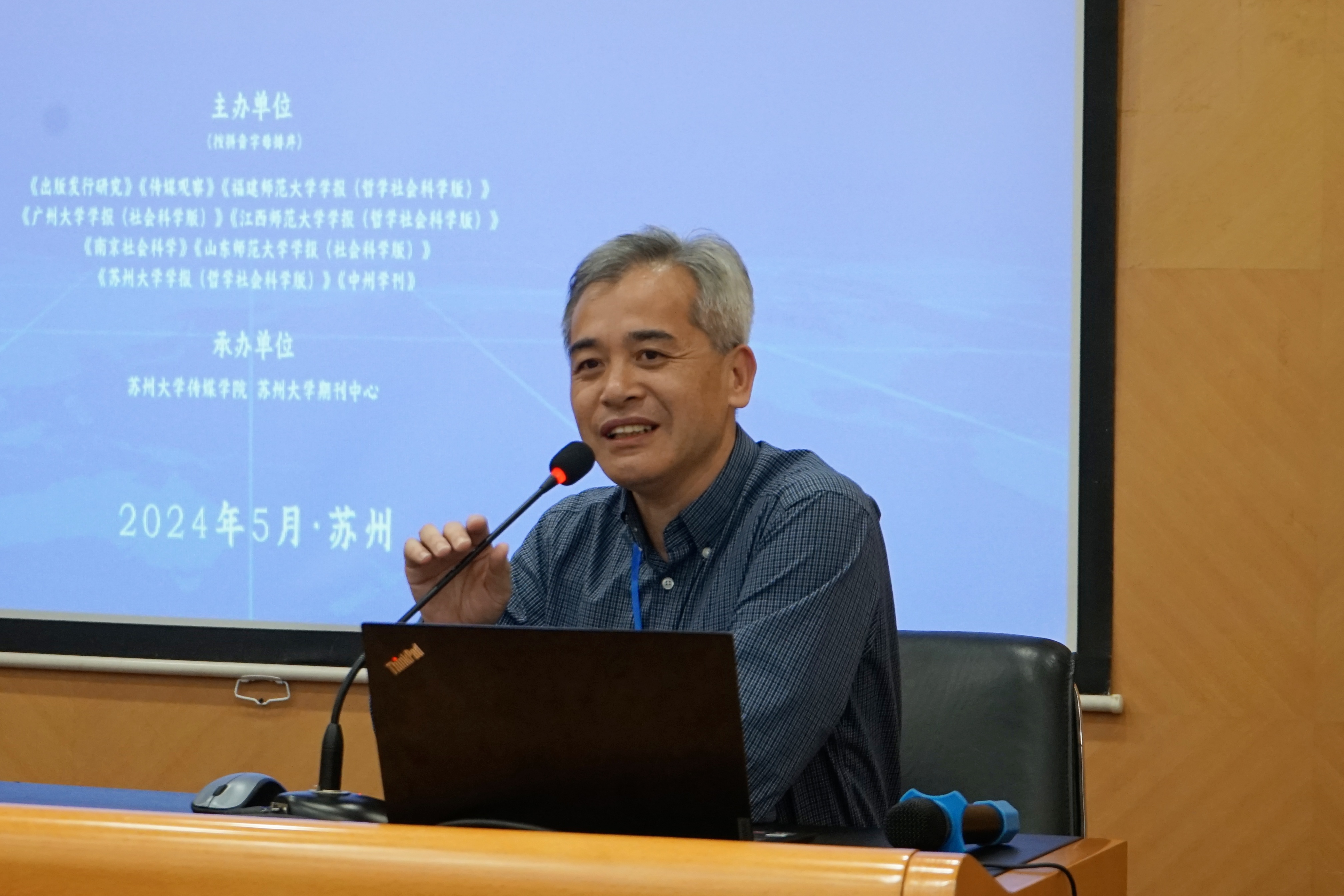 2024年5月17日至19日,第一届“数字传播与媒介中国”学术研讨会在我校天赐庄校区红楼会议中心举行。本次研讨会由《出版发行研究》《传媒观察》《福建师范大学学报(哲学社会科学版)》《广州大学学报(社会科学版)》《江西师范大学学报(哲学社会科学版)》《南京社会科学》《山东师范大学学报(社会科学版)》《苏州大学学报(哲学社会科学版)》《中州学刊》主办,苏州大学传媒学院、苏州大学期刊中心承办。围绕“数智时代的传播:人机共生、平台社会与国家治理”的主题,来自中国人民大学、北京师范大学、复旦大学等知名高校的新闻传播领域著名专家学者、二次文献机构负责人、“数字传播与媒介中国”学术共同体代表、友刊嘉宾、获奖学者及各校师生120余人参加会议。苏州大学党委常委、副校长李孝峰,人文社科处处长陈一出席会议。会议由我校期刊中心主任江波主持。